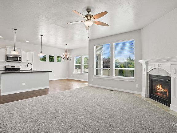 Close in star location off Plummer and Floating Feather Road. Great small community with central park area. Pride of ownership shows in this quaint neighborhood. This Single level home with Bonus room has it all. New Interior Carpet, New Interior Paint, New Front and Back landscaping & New Furnace. This split bedroom floor plan features a open entry leading to a large great room with fireplace. The master suite includes a barn door leading to the master bathroom which includes a separate tub and shower. The master closet is large and the dual vanities just add to this great space. Rear Yard includes fireplace, new sod and plenty of room for shed or toys on the side of the home. This house is special and will be sure to please. You will not find a better home at this price in this location with this fit and finish in Star.