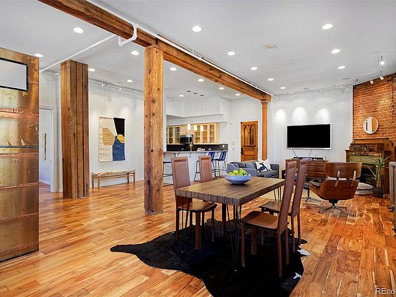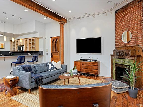 One of a kind loft home in the desirable San Rafael neighborhood. With a private entrance this home lives more like a townhome. Charm fills the home with exposed brick, original wood columns and beams, as well as the original fireplace, doors and trim. Modern updates include newer hammered hardwood floors, newer kitchen with quartz counters, Jennair appliances, a large pantry, and an updated bathroom. Art lovers dream with custom gallery art hanging system and track lighting. As a corner unit this home has over 8 large windows to bring in plenty of natural light. The large primary bedroom has an en-suite bathroom and a large walk-in closet complete with custom shelving and a washer dryer and utility sink. Incredible custom copper sliding doors give the comfortable office privacy. Easy access to the garage and community rooftop deck. Live in the middle of it all with downtown nearby, City Park just 10 blocks away, Presbyterian St. Luke's just 1 block, and even Welton St shops and restaurants are just 4 blocks from home. Easy access to Light Rail, I25, DIA etc. This is an incredible home in an incredible location. Welcome home.