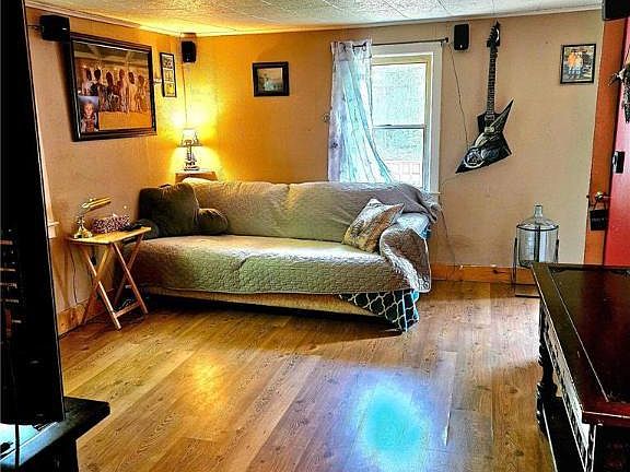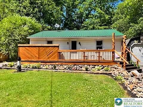 This Charming 2 BR, 1 BA Ranch is a Nature Lover’s Dream! Perfectly nestled in a peaceful setting, the property offers both privacy & access to nature, w/a stream running through the back yard & 100 acres of wooded trails directly across the street—ideal for biking, walking, or ATV adventures. Inside, you’ll find a cozy living room & eat-in kitchen, accented by hardwood flooring throughout, w/carpet in the BR's for added comfort. Full bath features live-edge wood accents, natural stone sink, & all-cedar walls—a true retreat. The mud/laundry room w/its own wall heater offers convenience & utility. Stay warm & save big w/the efficient wood stove, which heats the entire house for only about $400/year, along with baseboard heat backup for peace of mind. Outdoors, the appeal continues w/2 beautiful decks: a 30-foot front deck (cedar & Trex) & spacious 20x13 Trex back deck, perfect for relaxing or entertaining. The fully insulated & heated 12'x12' shed includes wainscoting, carpet, & electric service making it a great space for a home office, hobby room, or extra storage. Detached 1-car garage offers secure, covered parking or extra storage space while plenty of off-street parking adds convenience & flexibility. Natural stone-lined yard is easy to maintain & beautifully landscaped w/mature hostas throughout. Close to Rtes 33, 78, 22 & 80 and only 1 mile from Appalachian Trail!  This unique home combines practicality, artistic detail, & outdoor access like few others!