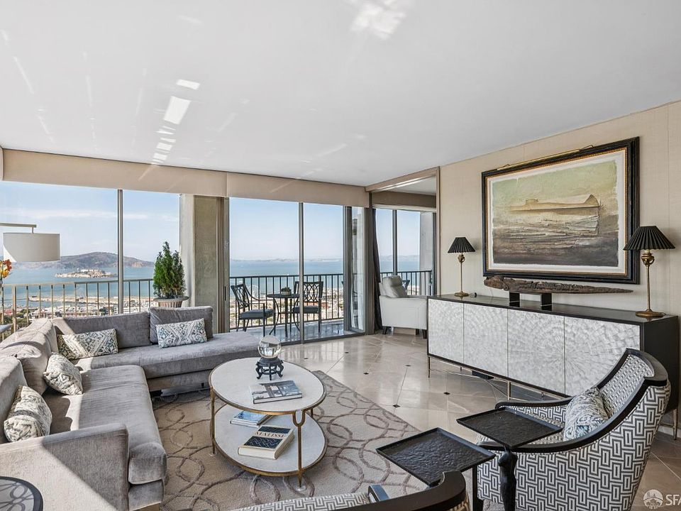 Sitting high atop Russian Hill, this northwest-facing corner condo serves up some of San Francisco's most iconic views from the rolling hills west of Twin Peaks all the way across the Marin Headlands, Alcatraz, Coit Tower and the Bay. Located in The Summit, a landmark mid-century building by visionary architect Joseph Eichler, the home offers two spacious bedrooms and two bathrooms, including a steam shower. Walls of floor-to-ceiling glass flood the airy, open layout dining and living areas with light, and open out to a huge private terrace that spans the entire length of the home - perfect for indoor/outdoor living. Amenities include 24-hour front desk service, a beautifully redesigned lobby, secure parking, private storage, on-site management, a landscaped courtyard, and a dog walk right on the mezzanine level. World-class dining, shopping, and culture are just minutes away in Russian Hill as well as the vibrant surrounding neighborhoods of North Beach, Nob Hill, Polk Gulch and Pacific Heights. This is a rare opportunity to own one of San Francisco's most iconic outlooks in a full-service, world-class building.