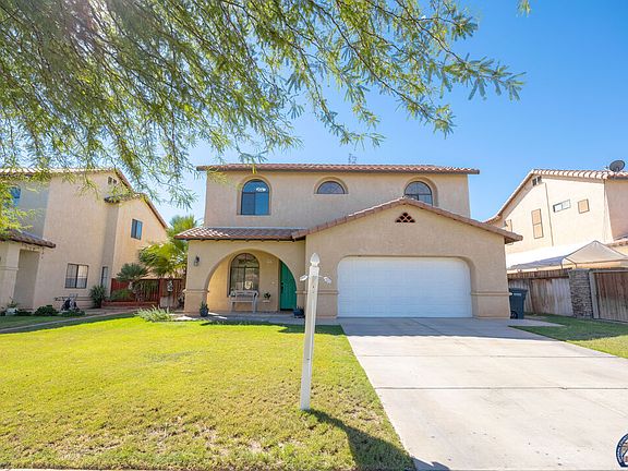 Welcome to this stunning Spanish-style residence in the highly desirable Desert Village community. With charming arched windows and elegant indoor hallway walkways, this home offers timeless character and modern updates throughout. Step inside to vaulted ceilings and a cozy fireplace, creating a warm and inviting living space. The floor plan includes a convenient downstairs bedroom and full bathroom, perfect for guests or multi-generational living. Upstairs, the spacious primary suite features an extended retreat, ideal for relaxing or setting up a private sitting area or office. Recent upgrades include fresh interior paint, new laminate flooring in the kitchen, a water filtration system, and a water softener. The home also comes equipped with a new washer and dryer and a mini-split AC unit in the downstairs bedroom for added comfort. Outdoors, enjoy a fully covered backyard patio with extended concrete, perfect for family gatherings and entertaining year-round. This beautiful home in Desert Village combines classic Spanish architecture with thoughtful updates, making it truly move-in ready.