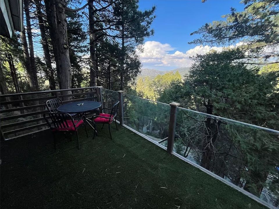 Welcome to this beautifully upgraded mountain retreat set on an expansive lot made from two combined parcels, offering unmatched space, privacy, and flexibility. This versatile property features two separate living units, making it ideal for multi-generational living, rental income, or guest accommodations—all while enjoying serene tree and lake views. Step into an inviting open-concept living area with vaulted ceilings, abundant natural light, and a charming brick fireplace at the heart of the home. The layout flows seamlessly into the dining area and kitchen, creating a perfect setting for gatherings. The upper unit includes 3 spacious bedrooms and 2 full bathrooms. The luxurious primary bedroom with a spa-style bathroom features a freestanding soaking tub, modern tile work, new vanity, and custom built-in cabinetry. This unit boasts a spacious deck with curved glass panels to maximize lake and treetop views. The thoughtfully renovated lower unit offers a brand-new kitchen, a full bathroom and spacious bedroom with a half bath and direct outdoor access. This unit enjoys its own private deck with exclusive stair access, curved glass panels framing the tree and lake views, and a relaxing outdoor seating area with two hanging chairs. A shared laundry room is conveniently accessible to both units. No detail was overlooked in improving comfort, efficiency, and style: New split-system A/C unit, Ceiling fans in every room, Complete electrical upgrade, including new sub-panel, switches, and outlets, All ceilings insulated and drywalled, replacing outdated finishes, New windows and sliding glass doors throughout, Tankless water heater for energy efficiency, New vinyl flooring installed throughout, Critical foundation and structural enhancements have been completed, ensuring long-term stability and peace of mind. Deck and outdoor enhancements include: deck railings raised to meet current building codes, curved glass panels installed on both decks to preserve unobstructed scenic views, lower unit features an entirely private deck with separate entry, new security gates installed to fully enclose and distinguish each unit. Whether you're seeking a full-time residence, a vacation home, or a dual-income investment property, this beautifully modernized Crestline gem offers exceptional versatility and comfort. With its expansive lot, thoughtful upgrades, and serene mountain surroundings, this mountain home is truly a rare find