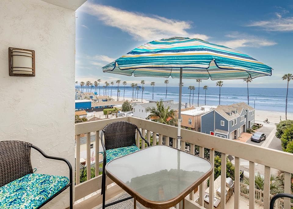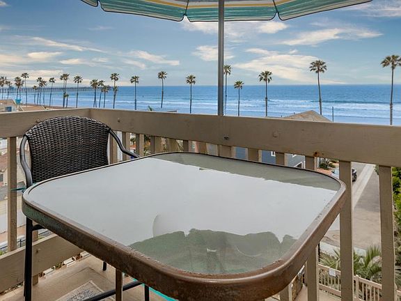 Welcome to your top-floor ocean view condo at North Coast Village, featuring breathtaking views of the white-water, pier, and beach! Savor your days with stunning scenes of sailboats, surfers, and dolphins from your private west-facing balcony and living room. The spacious bedroom also offers amazing ocean views, allowing you to fall asleep to the soothing sound of the waves. This beautifully upgraded condo includes modern kitchen cabinets, stainless steel appliances, granite countertops, a granite bathroom vanity, wood-look tile floors, newer carpet, a tiled walk-in shower, and custom lighting. With features like pull-out shelves, a walk-in pantry/storage, and closet built-ins, this unit is move-in ready. Convenient elevator access from the parking space to your condo adds to the ease of living. Perfect as a primary or secondary residence, immerse yourself in the lush tropical ambiance of this resort-style community. Enjoy amenities such as two heated pools and spas, BBQ areas, fitness rooms, saunas, billiards, ping pong, putting greens, tranquil waterfalls, meandering streams, a serene Koi pond, and a gated community with 24-hour onsite security. Just steps away from the beach, experience coastal living at its finest. Oceanfront North Coast Village is ideally situated between the Oceanside Harbor and the Historic Pier. Walk to nearby coffee shops, restaurants, boating, surf lessons, bike rentals, whale watching tours, and more. This is truly paradise found! Oceanside is a vibrant beach city nestled between San Diego and Orange County, making it a perfect location for destinations in either direction. A short walk to the train offers easy access to Orange County, LA, or San Diego. Enjoy a bike ride or stroll to downtown's latest attractions, including shops, museums, wine tasting, farmers markets, local breweries, and year-round events at the beach. Oceanside boasts a lively local scene, featuring the Michelin-starred Valle restaurant, numerous specialty eateries, and the upcoming Frontwave Arena for sporting events and concerts. Don’t miss this opportunity to own a slice of coastal paradise!