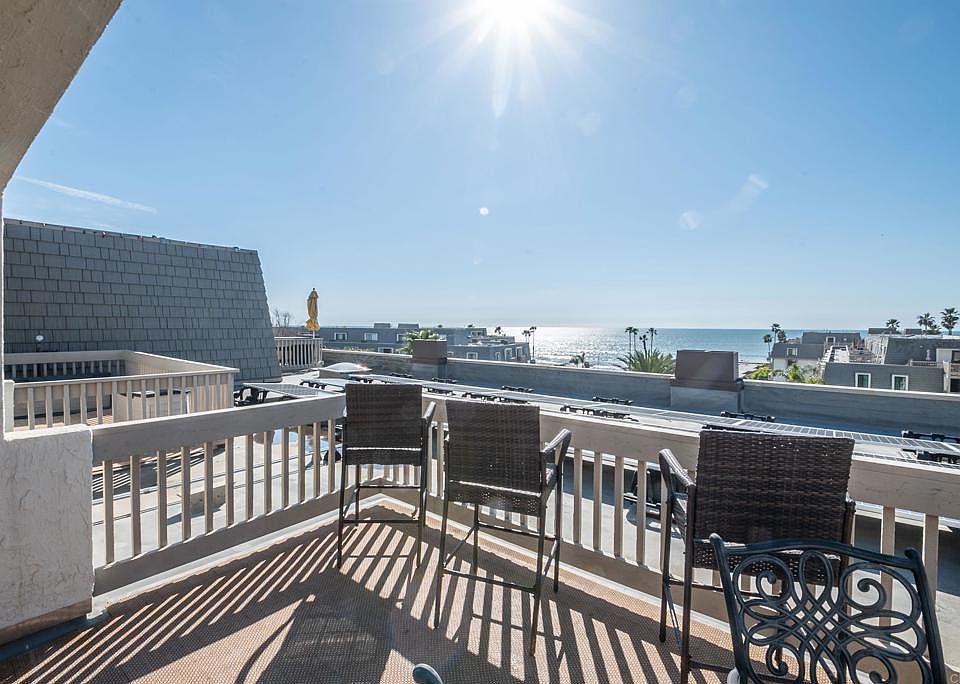 Blue-water ocean view condo! Step into a successful vacation rental operation in the stunning resort-like community of North Coast Village. Experience beachfront living at its finest with this 2-bed, 2-bath reverse penthouse, 3rd-floor condo. Enjoy breathtaking ocean views, sea breezes, and easy access to the beach and local attractions. It is ideal for personal use or as a lucrative investment property with active short-term rental status. Your updated haven features dual primary suites (one with blue water ocean views!), granite countertops, plush carpeting, vinyl flooring, and triple-paned windows for tranquility. The open floor plan is perfect for entertaining, with a gas fireplace, updated en-suites, and abundant natural light. Your first floor living spaces offers a quaint balcony overlooking N Pacific St and the picturesque San Luis Rey River to the East. North Coast Village offers resort-like amenities including pools, jacuzzis, a gym, and clubhouse, all within a secure, HOA-managed community. HOA dues cover essential services like security, internet, cable, water, trash, sewage, gas, and parking. Don't miss out on this luxurious coastal escape – schedule a viewing today and start living the beachfront lifestyle you've always dreamed of!