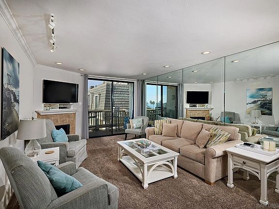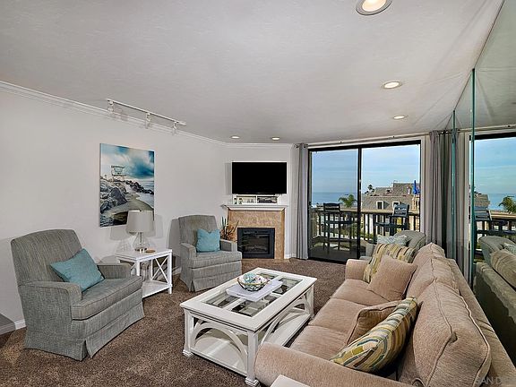 Seller will entertain offers between $699,888-$749,888. Step into this bright, west-facing, top-floor condo in North Coast Village and be immediately greeted by stunning ocean views! Open the patio doors to enjoy the soothing sound of waves and picturesque sights of sailboats gliding by. The condo features tasteful renovations, including granite countertops, stainless steel appliances, and a beautifully tiled bath/shower. Beveled mirrored walls in the living room and bedroom enhance the ocean vistas, creating an airy and open feel. Additional highlights include a tiled balcony, ceiling fans in both the dining room and bedroom, and a cozy fireplace with a tile surround in the living area. Treat yourself to a tropical paradise with streams, waterfalls, and lush landscaping. Two heated pools and spas, new gym, saunas, putting green, table tennis, and billiards are just some of the amenities you'll enjoy at North Coast Village, an oceanfront 24 hr guarded, gated property.