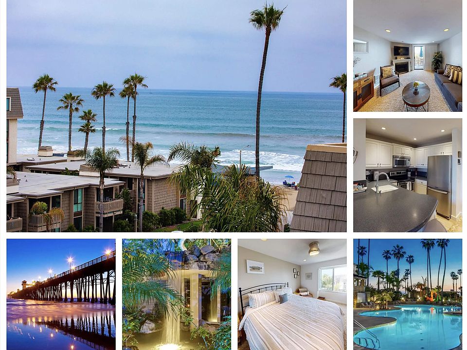 Seller will entertain offers between $774,888-$849,888. Whitewater ocean views greet you from the balcony of this updated beach condo! Enjoy the gorgeous tropical gardens, walking paths, streams, waterfalls, heated pools & spas as you meander around oceanfront North Coast Village. This is coastal living at its best with a top floor, end unit, & southerly facing location. Watch the waves, sailboats, and surfers as you sip your morning coffee, or fall asleep to the sound of ocean. Other amenities include gym, saunas, putting green, ocean view barbecue area, table tennis, & 24-hr security. Elevator from your reserved parking space to your condo. Sold furnished! Experience spectacular sunsets and enjoy a relaxing dinner along the picturesque adjacent harbor which features several excellent restaurants, great live music, and fun and unique shopping. You will also find reserved garage parking, cable television, recreation center, clubhouse with kitchen, massive stone fireplace and cedar walls, laundry in building, and elevator access to all floors. Downtown Oceanside has recently seen the opening of two luxury hotels: The Seabird Resort and the Mission Pacific Hotel by Hyatt.