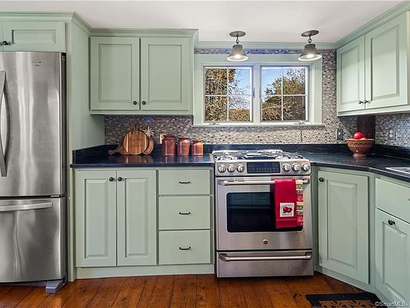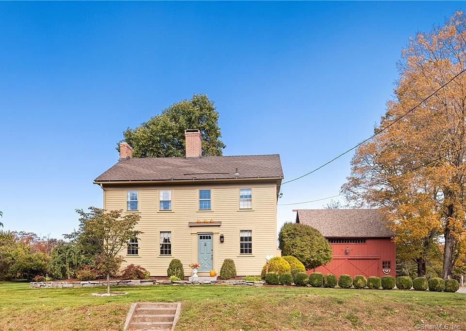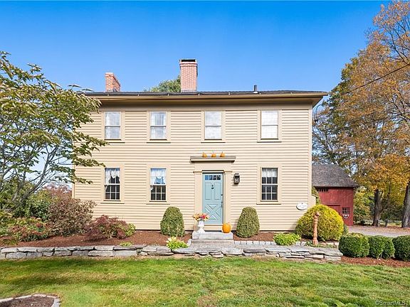 Right out of a magazine, LITERALLY, and admired by all, this "Farmer's Mansion" is a once in a lifetime find! Lovingly restored to perfection by its present owners, this home is the quintessential New England Georgian Colonial. Featured in Early American Life for its charm, beauty, and quality beyond compare! This home is truly special, from its wide board chestnut floors to its perfectly restored 5 seater outhouse and impeccable barn with loft! Open the custom, hand-made front door and fall in love! Light beams through the 12 pane windows in every room! The floorplan is just wonderful with a center fireplace that services the living, dining and family room which has a oven that still bakes your home made pizza! The renovated kitchen oozing charm and modern conveniences with stainless steel appliances, built in hutch, and gorgeous soap stone counters. The antique wide board floors are priceless! There is area right off the kitchen with an antique built-in postmaster desk: a great homework space or command central/mudroom. On the first floor you will also find wonderful sunroom overlooking the park-like yard, an updated full bath, laundry room, and a sun filled front office. Be sure to check out the custom made back door! The panel slides up for security! Upstairs are are three spacious bedrooms including the master and new spa like full bath! And a den/office with its own staircase. The grounds boast a new patio, mature gardens and trees, and Spectacular Barn! A true GEM! House was redone top to bottom; new roof, chimney, custom paint color, new driveway with stone pavement, new walks and patio, new granite posts, renovated outhouse and barn, renovated kitchen appliances, floors, walls, ceilings , custom made light fixtures through out the entire house, new baths, furnace , new hot water heater, new central air upstairs only, custom made hardware hand forge through out the whole house. There is a walk up attic. The barn is meticulous with three barn doors for access! Fruit trees, and extensive landscaping make the yard perfection!