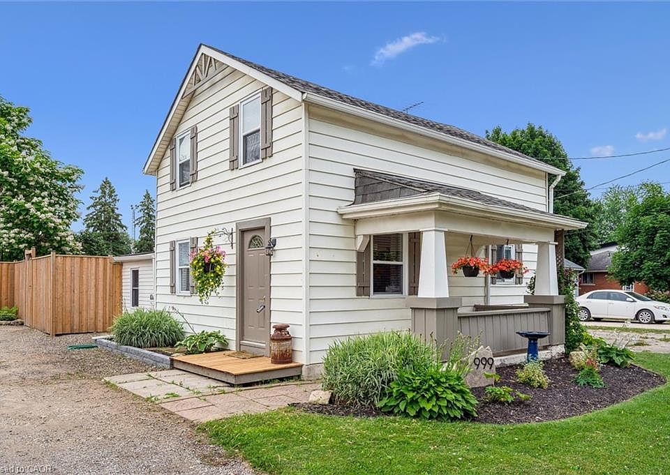 Charming family home in the heart of Conestogo. Enjoy small-town living just 5 minutes from top city amenities. This updated character home features exposed beams on the main floor, a renovated bathroom, freshly painted main floor and an updated spacious kitchen with gas-stove and stainless steel appliances. The second floor offers two large bedrooms with ample natural light and room for the whole family. Situated on a spacious 86 x 200ft irregular lot, the property backs onto a community centre with tennis courts, ball diamond, playground and a ball hockey rink. The property offers ample parking, including a double driveway for 6+ cars and a detached workshop/garage with a drive-through door. An additional single driveway accommodates 2 more vehicles or allows for parking an RV/other machinery. Recent updates include a newer furnace and A/C (2018), an owned water softener (2019), gas line for a BBQ, gas stove (2022), fridge (2023), washer & dryer (2021). The fully fenced yard boasts a large deck with a gazebo, a large fire pit, 4 lilac trees, 2 cherry trees and a well established grape vine as well as beautifully landscaped gardens with plenty of room for a vegetable garden. Don’t miss out on this impressive home!