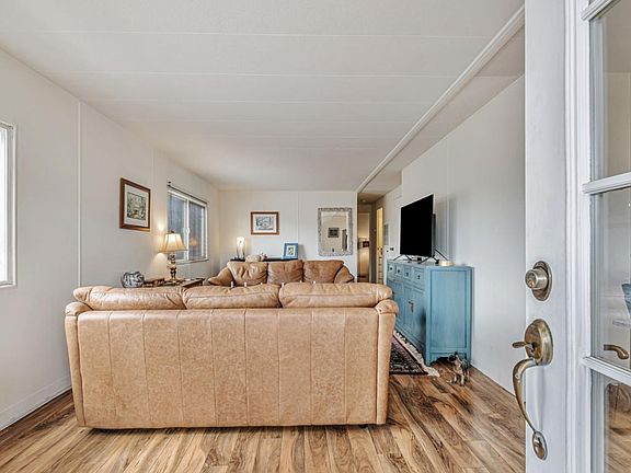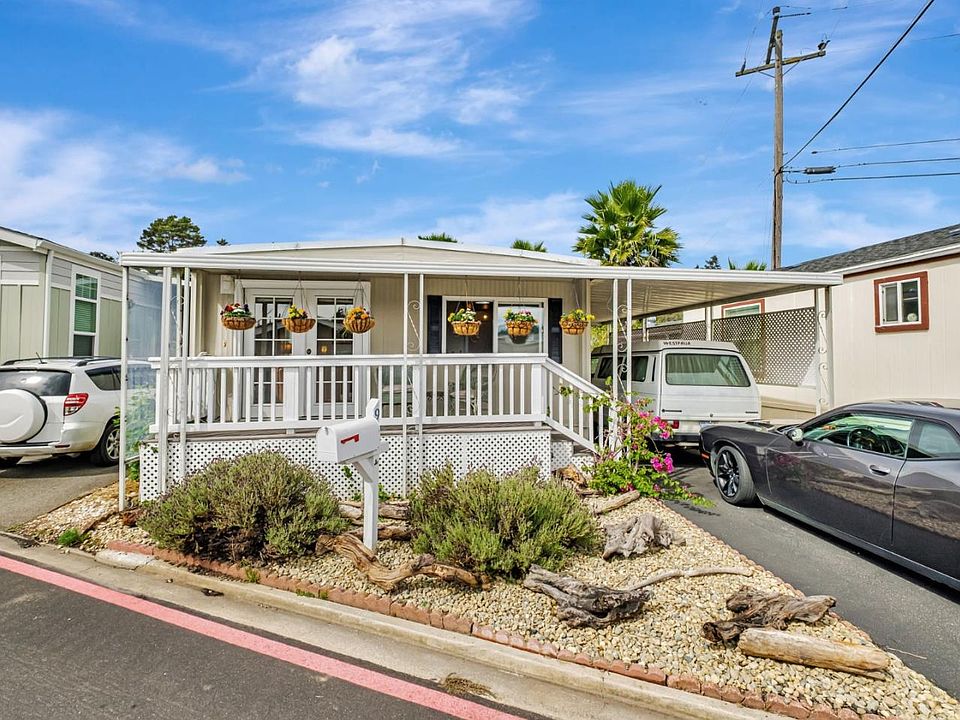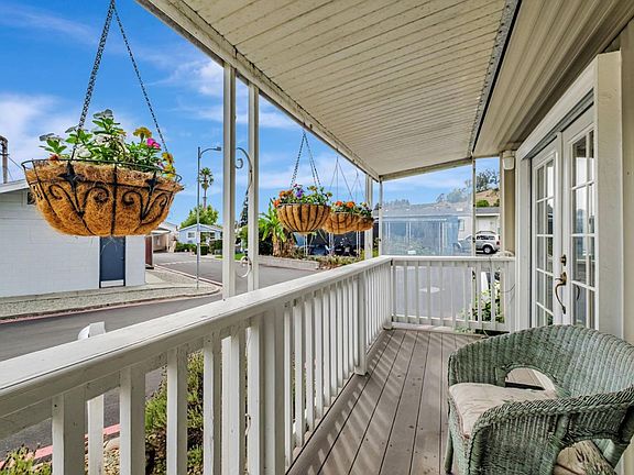 Welcome to this charming 2-bedroom, 1-bathroom shabby chic home in the sunny Soquel. Boasting 800 square feet of well cared for space, this residence offers a cozy and inviting atmosphere. The kitchen is well-equipped with modern amenities, ceramic tile countertops, gas cooktop with exhaust fan above, and built-in oven and microwave. The home features newer laminate wood flooring throughout, providing durability and easy maintenance, the living room is spacious and easily fits 2 full-sized sofas. The dining area includes a built in hutch, bottom for closed storage, top to show off your special items behind glass cabinet doors. Stay comfortable year-round with Soquel's welcoming climate and afternoon breezes. Enjoy a glass of wine, or a cup of tea on the front porch or at the back courtyard. Laundry is made easy with in-unit washer and dryer. Additionally, double pane windows contribute to energy efficiency. This is beautifully kept family park, and has a 'secret' pathway to the Anne Jean Cummings Park (Blue Ball Park) where the kids can play, and you may relax or host a BBQ