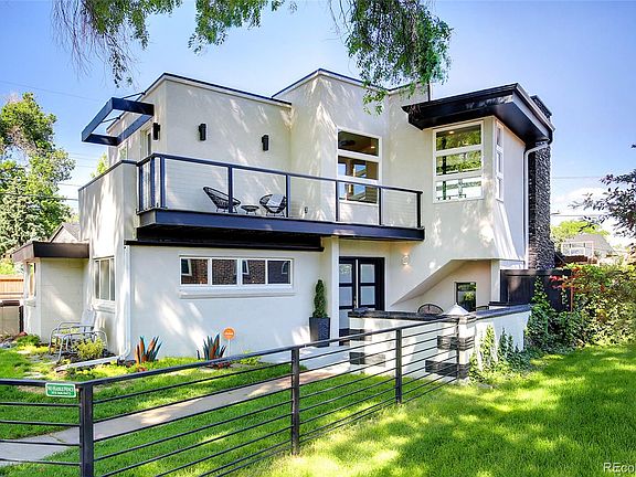 This rare, under $1M, 2-story home with mid-century modern flair sits beneath the treelined canopy streets of Denver's coveted Bonnie Brae Neighborhood. Dressed with original 1950's charm and contemporary finishes, lightly white oak stained hardwoods originate from the stylishly modern tower gateway aglow with natural light and amplified by sleek metal stair-rails reaching the second-floor. Privately tucked away beyond the entry, a full-bath is trimmed with hexagon-shaped tile floor and single-vanity, and is met by two equally appointed secondary bedrooms. A built-in photo display ledge signals the start of a timeless living room accentuated by stacked-stone adorned gas fireplace, while ushering connectivity to an adjacent family room and euro-inspired, eat-in kitchen cast in orderly white cabinets, stainless-steel appliances, and oversized transom windows. Upstairs, you will find the 2018 addition which includes contemporary finishes surrounded with gleaming windows and a second stacked-stone gas fireplace in the loft just outside the primary bedroom ensuite. The ensuite radiates within unfiltered natural light that pours in from a wraparound balcony accessible through the walk-in closet containing laundry, while a modern barn door encloses the primary bath mirrored vanity with marble-top and separate pocket-door encloses the shower and toilet. Close proximity to Cherry Creek North and Wash Park; plus, near S. University Blvd and S. Colorado Blvd for transit throughout the Mile High City. Just blocks from local favorites - Bonnie Brae Park, Bonnie Brae Ice Cream and Tavern and restaurants and shops on Gaylord Street.