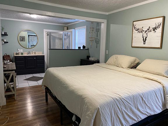 Large wood burning fireplaceWooden deckEat-in kitchenUpdated flooring and cabinetsTwo closetsLarge two car carportTile flooring