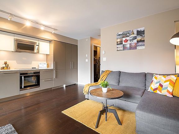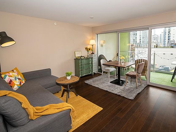 Beautifully maintained 1 bedroom suite with bonus den/flex room at the 999 Seymour. A smart choice for first-time buyers or investors interested in a turn-key opportunity. Bright & spacious with SE city views in the popular & convenient Yaletown/ Downtown West area. Open-concept living room/kitchen with seamless entry to a 116 sqft patio with optional sliding door enclosures to increase the living space to 630+ sqft. A fantastic expansion of your living & entertaining space to be enjoyed all year round. Highlights include bathroom and kitchen quartz counters & backsplash, sleek & modern cabinetry, under-mount lighting, and gentle-close cabinet drawers. Well-managed strata offering exercise and recreation facilities. Close to bus, Skytrain, shopping, dining, and all lifestyle amenities.
