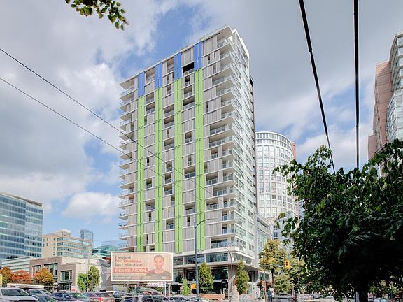 999 Seymour is an innovative and unique residential building that stands out against all others. This concrete tower is a collection of just over a hundred exclusive homes. 999 Seymour has been designed to embrace the values of a modern West coast urban center lifestyle. Located in the heart of downtown Vancouver this location is walk convenient to everything. Modern features include designer linear kitchen with quartz counter tops and integrated appliances. Extra special large South facing patio with the best building exposure that include very cool weather protection screens to reduce all questionable conditions. Floor to ceiling glass sliders that open the indoor living to include to outside through sunny summer days. Pets and rentals are welcome. Steps to all central city amenities.