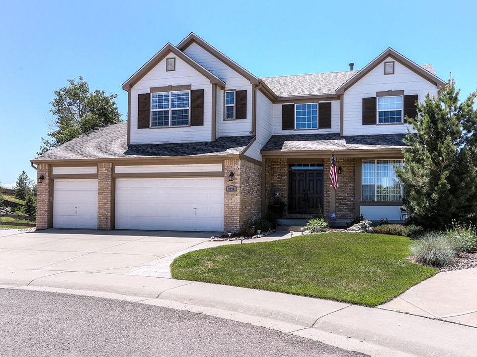 Desired location! Immaculate, updated executive home in cul-de-sac, backs to open space greenbelt: 6 beds (1 main fl), 4 baths, finished walk-out basement, 3 car gar. Mountain views! New roof, solar panels. Updated Gourmet kitchen w/Granite counters, tile backsplash, island, 42 refinished cabinets w/crown molding, all kitchen appliances stay. Hardwood floors thruout. New window coverings, crown molding, new railings/iron balusters. Upstairs: 4 beds, 2 full baths. Master Suite has remodeled 5-pc bath, Granite, vessel sinks, his/hers walk-in closets, bonus sitting room. 2nd bath is 4-pc, accessed by hall & bedroom. Huge fin walk-out basement boasts media area w/built-ins, room for pool table, 6th bed, nearby 3/4 bath, fitness room w/French doors. Oversized laundry room w/cabinets. Upper deck plus lower stamped concrete patio. Tons of storage. Access to 4 Rec centers, low HOA. Top-rated schools: Heritage Elem, Mountain Vista, near Valor. Too much to list! Listing Agent: BOB MINER Company: RE/MAX PROFESSIONALS Phone: 303-638-9033 Email: bminer@remax.net