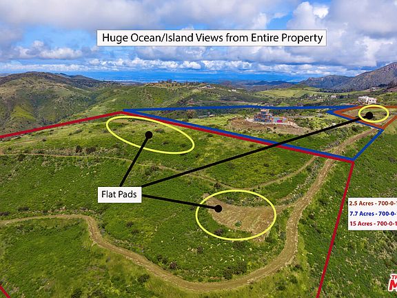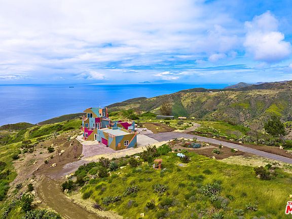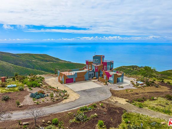 Nestled above Western Malibu, this remarkable architectural residence boasts breathtaking ocean andisland views, flooding its interiors with abundant natural light. Expansive windows and wraparounddecks, including approximately 2,750 square feet of decks and balconies, offer panoramic vistasstretching from the Topatopa Range and Boney Ridge to Catalina, San Clemente, and the ChannelIslands. Positioned on an exclusive promontory encompassing approximately 7.75 acres and situated atthe end of a cul-de-sac, this property ensures unparalleled privacy, enhanced by its extensivelandscaped grounds designed for leisure and entertainment. Included is a separate 15-acre flat buildingpad with a Certificate of Compliance, providing additional opportunities for development.The main living area, which affords whitewater ocean views, encompasses the living room, dining area,and gourmet kitchen. With its soaring ceilings and glass patio doors, this space is infused with a senseof openness. Elegant concrete and porcelain tile floors grace the interior, while the kitchen is equippedwith top-quality appliances, a sizeable granite-topped island offering built-in storage and bar seating,and ample counter space. The kitchen also features large windows that frame the captivating view.On the main floor, you will find an office that provides serene mountain views, a laundry room, and theprimary suite. The primary suite boasts mesmerizing ocean and island views, complemented by wood-plank ceilings and floors. It also encompasses a walk-in closet and a spacious bathroom with dual sinks.Ascending to the 2 nd floor, you will discover 3 bedrooms that open onto balconies with stunning 360degree views and access to rooftop decks. The 3 rd floor is currently used as an office. This space couldbe transformed into a sensational en-suite bedroom. enveloped by windows, decks, and awe-inspiringvistas. Atop the 3rd floor is a remarkable rooftop deck with breathtaking vistas of the surrounding land,sea, and starry night skies.Designed for grand-scale entertaining, the property offers ample patio space, a Jacuzzi, and plans for an85-foot, three-sided zero-edge swimming pool. Additional features include a central vacuum system,abundant storage options, drought-tolerant landscaping with drip irrigation, and a 950 square foot 3 cargarage with guest parking for at least 15 vehicles. This extraordinary site boasts an impressive andremarkably comfortable residence. The property includes APNs 700-0-150-45 and 700-0-150-24.