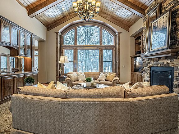 This masterfully designed 6Bedroom-7Bath former Parade model home is nestled on a premier private lot!Expansive backyard offers peaceful woods with an plethora of wildlife,array of year round color,tranquil views including babbling Rush Creek.Screen porch offers fireplace,granite counter&vaulted cedar ceiling.An oasis of seclusion in the city!Extraordinary 2-story great room features dramatic beams&majestic wall-of-windows to witness natures treasures.Gourmet kitchen;dovetail drawers,self closing hardware,pot filler faucet,SubZero refrig,Wolf cook-top/oven,2 pantries+!Office with coffered ceiling,pocket French doors&see through fireplace.Additional main&upper level studies!Large bedrooms incl.main level primary suite with luxurious bath offering airjet tub,step-in shower and grand closet space.Theater&exercise room!Wet bar with adjacent wine cellar.Lower level 5 zone infloor heat!Walk out.3 zone HVAC.Garage with floor drain&utility sink.New:roof,steel siding,gutters&low maint. deck!