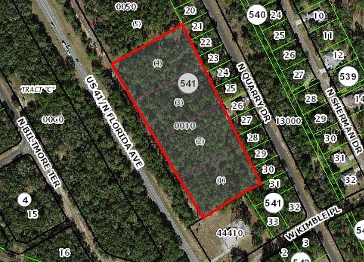 This 6.20-acre commercial parcel, consisting of four contiguous lots with over 800 feet of direct frontage on US Hwy 41, offers a prime opportunity for developers and investors looking to establish a presence in one of Citrus County’s fastest-growing areas. With its high visibility and daily traffic, this location provides exceptional exposure for a variety of commercial uses. The property is zoned Commercial/PDR and located in a No-Flood Zone (X), making it well-suited for retail, office, or mixed-use development. Surrounded by ongoing residential expansion and positioned along a major transportation corridor, this site represents an excellent investment in the continued growth of Citrus Springs and the surrounding region.