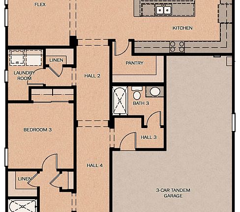 The Santa Ynez is our largest single level plan at 2268 square feet. It boasts 3 bedrooms, 3 baths, flex room that can be a den, home office, 4th bedroom, open study or dining room, and a three car garage. It can house a fifth bedroom as well. It boasts a 39 HERS rating.