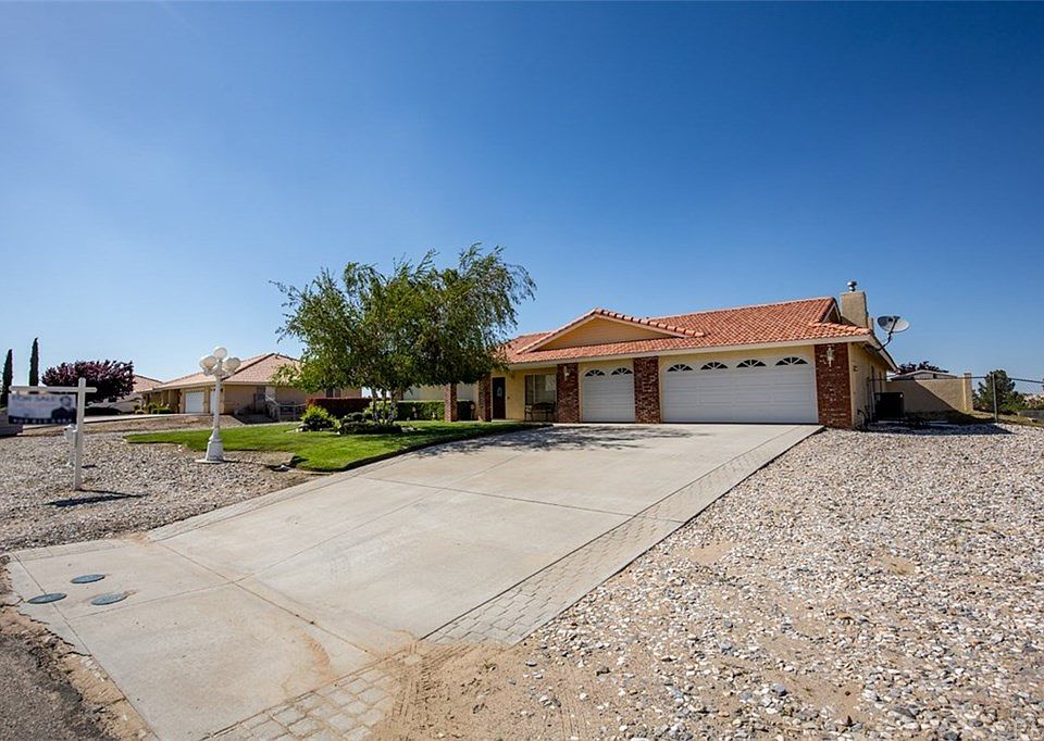 Upon entering you will notice a spacious living room offering plush carpet and vaulted ceilings. Beyond the living room leads you towards a sizable kitchen with an open concept to the family room. The kitchen presents oak cabinets topped with granite counters, dual sink, stainless appliances and bar style seating. The family room bestows a ceiling fan, similar carpet carried throughout the home, free standing fireplace with an adjustable blower fan that could warm the entire home, and surround sound. As you walk down the hallway, you will appreciate the guest bathroom, and three spacious bedrooms. One of the bedrooms is a master suite, and the laundry room is connected to the guest bathroom, while offering direct access to the back patio. The master is enormous while also dispensing a natural gas fireplace and walk-in bathroom. The bathroom provides a dual sink vanity, topped with tile counters, soaking tub, separate shower and walk-in closet. Step outside and relish your massive backyard extending a large fifty foot patio, mature landscaping, and sparkling blue pool and spa. The lot is almost an acre in size, and will grant you plenty of space in the back lot to expand your property, or build amazing stables for your horses. The location is ideal, situated in the accredited Snowline Unified School District just north of the San Gabriel Mountains, and minutes away from the mountain high ski resort.