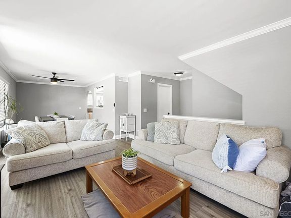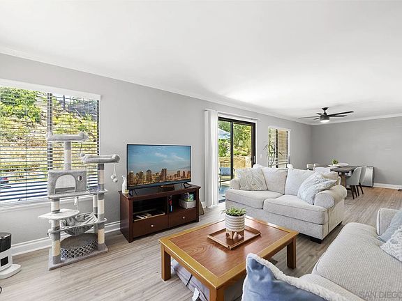 Complex is VA & FHA APPROVED (high owner occupancy:)! This Townhouse boasts an incredible living area of 1,341 square feet. The residence is a corner unit bathed in natural light and offers LARGE DUAL master suites upstairs along with an additional half bathroom conveniently located on the entry level adjacent to the living room. This property has been meticulously upgraded to offer the best in modern living. The kitchen gleams with granite countertops, updated cabinetry, and stainless appliances; while plank flooring runs throughout the residence adding to its overall elegance. In addition, you'll appreciate the fully upgraded bathrooms and custom fireplace that adds charm to this beautiful home. The recent upgrades include a new furnace & water heater ensuring added convenience for potential buyers. The entire interior has been freshly painted giving it a fresh and clean finish. An attached full-size two-car garage adds to the practicality of this home. The garage is fully finished and comes equipped with a washer, dryer, sink and storage units. Other notable features include whole-house fan, ceiling fans for those warm San Diego days, private patio/balcony for outdoor relaxation; plus recessed lighting and a walk-in closet offering abundant storage space. Located close to both the 56 & 15 Freeways ensures easy access to wherever you need to go. A short walk away are local restaurants and shopping venues providing convenience right at your doorstep. The complex also offers amenities such as pool and spa facilities for residents' use. Poway Unified School District! San Diego is known for its vibrant culture, fantastic weather and diverse range of activities which make it one of California's most loved cities. This area provides a variety of outdoor activities, walking trails, biking trails, and recreational opportunities; making it an ideal location for anyone who enjoys an active lifestyle. Only minutes from the beach, located off the 56 freeway, makes this an ideal location.
