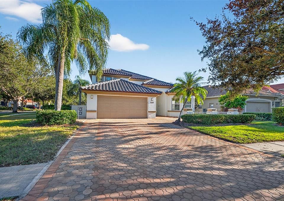 Welcome to the highly sought after gated community of Bayou Club Golf & Country Club. This Sago Point property makes an unforgettable impression from the moment you enter with its grand curved staircase and soaring ceilings. With 3,459 square feet of living space, this is a rare find and one of the largest floor plans for a 4 bedroom, 3.5 bath property in this neighborhood. The thoughtfully designed floor plan features the main living areas on the primary floor. The kitchen underwent an extensive remodel and offers plenty of room for entertaining with a large island that opens to the living room, a breakfast bar and adjacent formal dining area. A separate flex space provides the perfect spot for a home office or playroom and there’s also a convenient powder bath for guests and a laundry room on the first floor. The oversized primary suite is a true retreat with private access to the screened-in pool and lanai, plus an updated ensuite bath featuring double vanities, a soaking tub, a large walk-in shower, and two walk-in closets. Upstairs, you’ll find three additional bedrooms, two full bathrooms, and a loft-style living space. Major updates include a remodeled kitchen and bathrooms (2019), new flooring (2019), imported crystal chandeliers (2020), two new AC systems (2021), a brand-new roof (2025), and a new pool heater is being installed. The HOA covers lawn care, irrigation, trash, recycling, and 24-hour guarded gates, offering low-maintenance living in one of the area’s most prestigious gated communities.