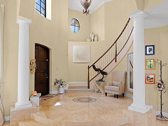 Luxurious living at its best!. This is an exquisite estate home which features 4 bed and 5 1/2 bath, lush landscaping, and an outstanding summer spot perfect for spending time with family. A real WOW factor flooded with natural light and soaring ceilings throughout the house. Flowing layout as you enter into the rotunda, decorating the beautiful travertine floors walking you through an enchanting formal living room with an exquisite fire place. The chefs kitchen features top of the line appliances including a new kitchen sink. An astonishing master bedroom can be found on the first floor with his and hers built in closets and 2 separate bathrooms. The second level has fabulous wood flooring pleasing you to the additional 3 bedrooms with custom closets and 2 crisp bathrooms. The outside captivating a large salt water heated pool with a post-card perfect view of total serenity of one of the largest lots in the Community offering an "al-fresco" dining area where you can spend time having your favorite glass of red wine admiring the Sunset.