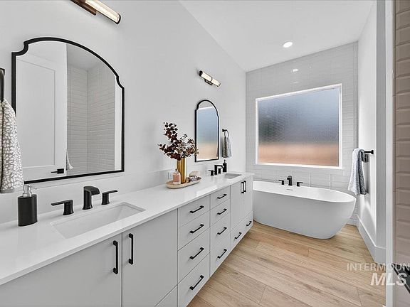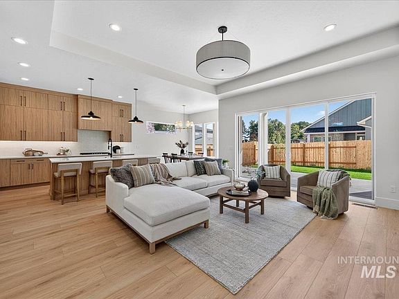 NW Boise new build with high-end functionality. This 2,100 sq ft single-level home by Story Builders delivers intentional design without compromise: 4 beds, 3 full baths, no HOA, RV/trailer parking, and less than ¼ mile from Eagle. Enjoy 10' ceilings throughout, 11' coffered in the entry, living & primary, a 9' quartz island, full-height kitchen cabinets, LVP in main areas, tiled showers, soaking tub, and an oversized fireplace. Primary suite features a built-in safe + direct laundry access with sink & uppers. 220V inside/outside for RV or EV. Covered back patio with gas stub ready for BBQ season.