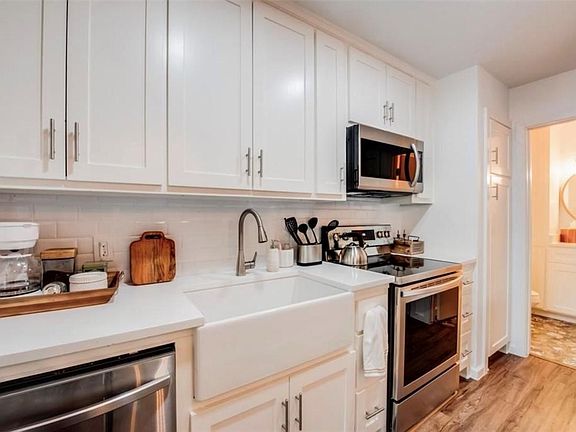 Community sitting areaStainless steel appliancesQuartz countertopsFarmhouse sinkCommunity docksNew cabinetryUpdated kitchen