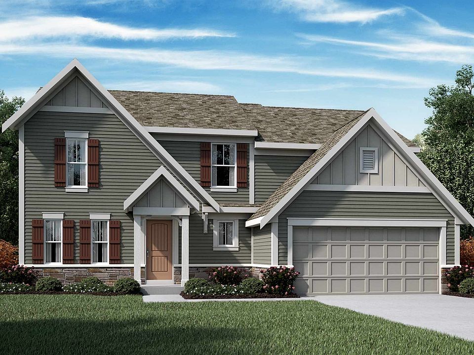 Lovely new Avery Cambridge Cottage plan by Fischer Homes in beautiful Meadow Glen featuring open concept living with an island kitchen with upgraded maple cabinetry, walk-in pantry, pocket office and walk-out morning room all with a view to the soaring two-story family room w/fireplace. Fst floor Guest Suite with full bath. Owners retreat with en suite with double vanity, shower and walk-in closet. Additional 3 bedrooms and a centrally located hall bathroom. Basement with full bath rough-in and a 2 car garage.
