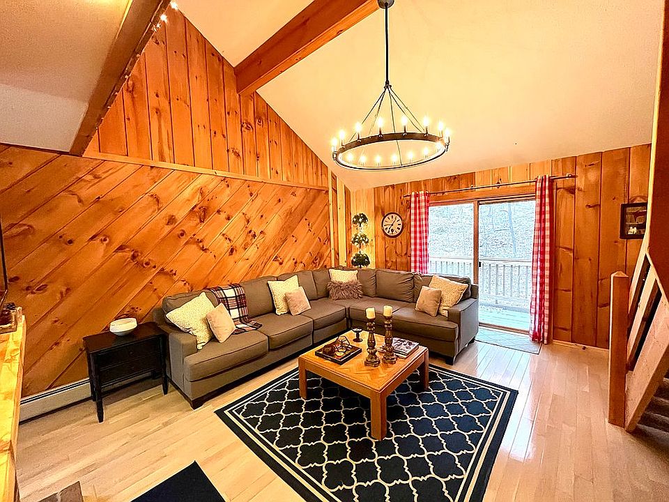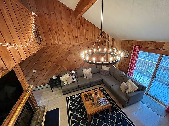 Renovated end-unit townhouse in coveted Bears Crossing at Mount Snow. Two-bedroom plus loft, 2-bath home just steps from the Ski Home Trail. Ski home for lunch on a private 1-mile plus trail from the top of Corinthia. Seasonal private shuttle to the mountain that is just one mile away. High end updates include Marvin windows and slider, new solid hardwood flooring, all stainless-steel appliances, Restoration Hardware chandelier, new wood-burning fireplace, renovated bathrooms, new carpeting throughout the bedrooms, new bedding, new washer/dryer, etc. Enter the 3-level townhouse through a cozy porch and enjoy nights out on the deck which is at the bottom of Mt. Snow. Dramatic vaulted Great Room makes for cozy winter nights with family and friends. In-unit laundry and two parking spaces. Clubhouse is nearby with pool table, ping pong and a fitness center. Large deck with gas fireplace and grills for summer fun. Seasonally heated outdoor swimming pool and brand new pickleball/tennis court. Mudroom with stylish cabinet/bench and ski/board rack. Pristine community nestled in the woods so you can take in the glory of VT year-round. HOA handles all landscaping, snow/leaf removal, trash, firewood delivery, etc. offering you the ultimate VT escape. Unit is registered with the State of VT as a short-term unit rental and has the Fire Marshal Certificate of Occupancy. Economical propane heat. Absolute turnkey property ready for the next family/investor. Unit comes fully furnished with a few exceptions. Close to Valley Trail, Harriman Reservoir and all the shops and restaurants of Wilmington.