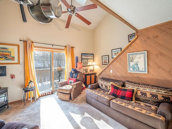 Charming 1 bedroom, 2 full bath Snowtree condo at the base of the Mount Snow ski resort. This efficient yet private sits adjacent to the bridge over to the magic carpet at Mt Snow, with easy access to the clubhouse with hot tub, exercise machines, outdoor pool, and lounge area. Inside you are treated to a vaulted floor plan with combo living and kitchen space, energy efficient gas fireplace, main floor full bath with dual gear closets, vaulted loft bedroom with second full bath and large closet, deck overlooking the stream and woods to the rear, with winter mountain exposure, and updated common hall, wood shed, and great association amenities including shuttle, trash, wood, snow removal, and landscaping.