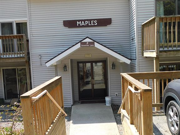 This exceptional loft bedroom, two-bath condo offers the utmost convenience, being just a short walk away from the lifts. Nestled in the sought-after Maples at Snow Tree community, adjacent to Mount Snow, this condo is a rare find. The main level encompasses a full bath, a well-appointed kitchen, and a welcoming dining/living area. The living room boasts a cathedral ceiling, Rinnai heater and gas fireplace. On the second level, you'll discover the splendid primary loft bedroom suite, offering privacy.  Additional storage space can be found on the third floor, ensuring ample room for belongings. The Snow Tree amenities center features a convenient shuttle service to the mountain, a clubhouse with large hot tub, sauna, exercise equipment, and a cozy sitting area. During the summer months, residents can indulge in the outdoor pool. With landscaping, firewood, snow removal, and trash removal included, maintenance is a breeze.