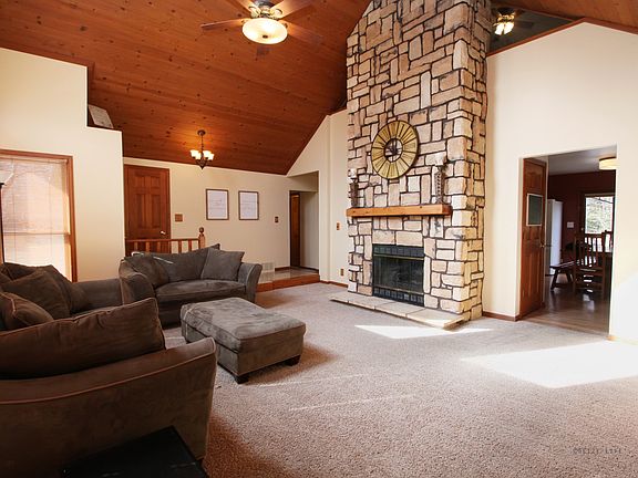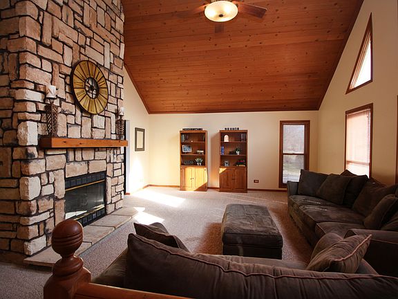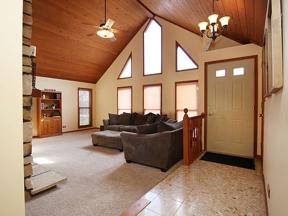 .95 acre lot! NEW KITCHEN, hardwood floors, cabinets, butcher block 3 Bd, 2 full baths Living/room vaulted ceiling stone fireplace loft area with view of Sprawling yard with mature fruit trees, separate entrance: In-law suite two bedrooms, living area, full kitchen, & full bath: Attached 3 car garage is fully insulated, dry-walled & heated: Basement dedicated laundry room w/sink, family room storage, w/access to in law arrangement. water softener system, reverse osmosis filtration in kitchens, Exterior is freshly painted. Home has a newer roof, air-conditioner & heating system. Garage type shed, chicken coop hay loft / storage area exterior water hook up. Large, maintenance free deck surrounds above ground pool placed below grade with convenient gas hookup to pool heater. Great location, 10 minutes to Randall Rd: schools 301 Red cabinets in garage do not stay