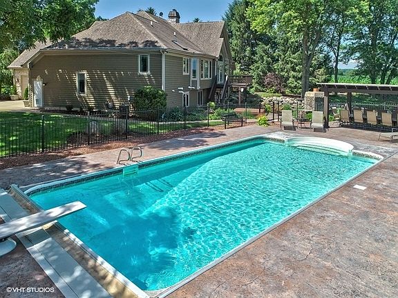 Enter through the gates, and you're surrounded by mature landscaping, beautiful views and 5 acres of total privacy. This property includes a stunning custom ranch home with nearly 6,000 SF of living space, 43x73 shop, pool and grounds with room for all the entertaining and hobbies your heart desires. The home has 4 bedrooms, 3.5 baths and the most incredible walk out lower level. Step inside and you are greeted by casual luxury that travels throughout every square inch. Warm woods, extensive millwork, gorgeous hardwood floors, transoms, arched windows, and soaring ceilings are just a few of the elements that will captivate. The great room's vaulted tongue and groove ceiling complements the wall of windows, stone fireplace, and built ins. Off the family room is your screened in porch with matching ceiling. The kitchen has all that you would expect along with a sitting area just steps from your deck. The dining room is just off the kitchen for ease of entertaining.The expansive primary bedroom has an en-suite bath with radiant heated floors, his and hers closets and access to the laundry room. Bedrooms 2&3 share a Jack & Jill bath. Rounding out the first floor is a laundry room and mud room. The garage features radiant heat, epoxied floors and direct access to the lower level. The walk out lower level has radiant heat throughout, a large open family room featuring a second stone fireplace , LOTS of natural light, a renovated 2nd kitchen and pantry that is simply stunning, large office, 4th bedroom, a flex room and full bathroom. Outside is 73X42 shop complete with radiant heat, full bathroom, separate gas service, designated 400 amp.service, and high speed internet. The pool area features an outdoor fireplace, patio, pergola, hot tub and views for days! There is a whole house generator, and both domestic and irrigation wells. This home is being conveyed "as is". Seeing this property in person is the only way to truly appreciate all it has to offer!