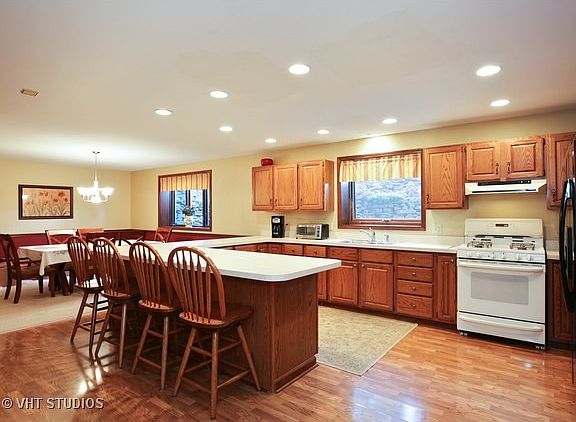 Very private setting surrounded by Forest Preserve owned land, this acre plus lot is a gorgeous setting with majestic oak trees, mature pines and beautiful landscaping. Family room has wood burning stove and wall of built-ins, the large kitchen has numerous cabinets, there is a first floor laundry and large closets. Master suite with balcony and master bath with whirlpool tub. Bonus room could easily be finished for an over sized 4th bedroom. There is a darling screened gazebo, heated garage, storage shed and fire pit. If you're looking for peace and quiet surrounded by nature and wildlife this could be the house for you.