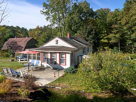 Country living in Woodstock means more than just a house it's a lifestyle of privacy, space, and possibility. With 1.5 acres of open and lightly wooded land, this property invites you to garden, raise chickens or small livestock, or simply enjoy the peace of a private rural setting. And with the Massachusetts border just minutes away, you'll find the perfect balance between country tranquility and convenient access to shopping, dining, and commuting options north. The home's exterior makes a welcoming first impression with its classic brick facade, white trim, and enclosed porch. A sunny patio and level lawn provide outdoor spaces for relaxation, entertaining, or homesteading. Multiple sheds and outbuildings add flexibility for storage, workshops, or creative uses. Inside, you'll find a comfortable layout with the kitchen and dining area flowing into a cozy living room warmed by a pellet stove. Wood details and natural light create warmth and character throughout. The home is move-in ready today, yet also offers the opportunity to modernize kitchens, baths, flooring, and finishes to reflect your own style while adding lasting value. What makes this property special is how seamlessly it supports a rural lifestyle acreage to enjoy, a border location for convenience, and the freedom to make it your own. More than just a home, this is an opportunity to create your own country retreat and experience the true essence of New England living.