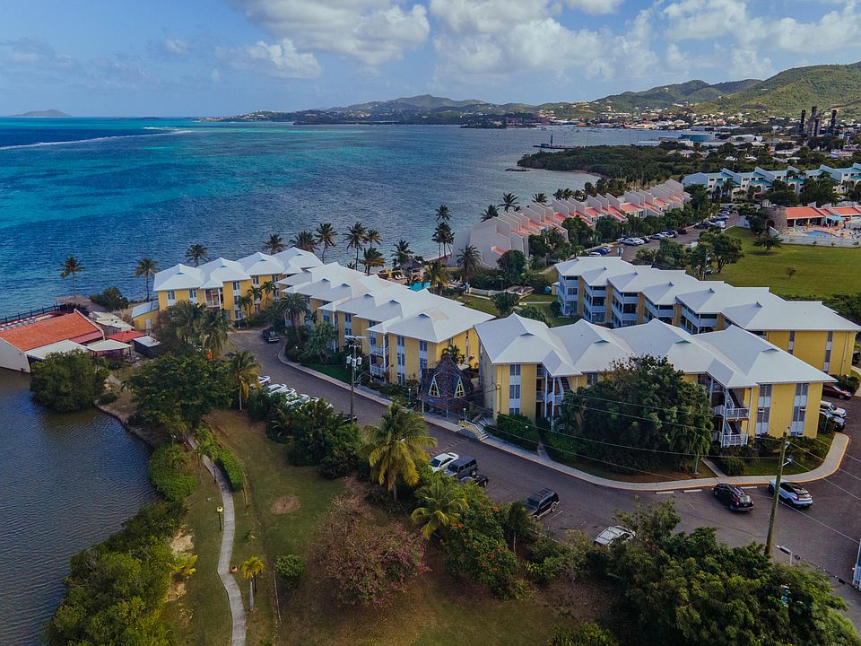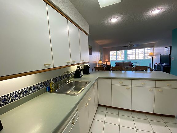 Second floor end unit with 2-bedroom, 2-baths and enclosed gallery - lots of extra living space! Window A/C units, ceiling fans, new electrical panel box, washer & dryer just off kitchen. Located just steps away from large pool, pool deck and sandy beach! Colony Cove is a gated complex located just across the harbor from downtown Christiansted - wonderful opportunities for short term vacation rentals!