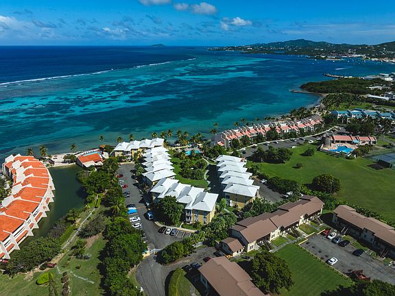 Let's talk about LOCATION! This 2-bedroom, 2-bath, upper END UNIT offers privacy and sweet sea views! Recently remodeled from top to bottom with new tile floors, new kitchen w/ granite countertops, soft-close cabinetry, tiled backsplash, water filtration & reverse osmosis, relocated W/D out of kitchen to add space, new sliders, new windows in MBR/MBA, new light fixtures, opened the enclosed gallery, new Split A/C's and even installed a Kegerator! This gated beachfront complex is surrounded by lush tropical foliage and is convenient for local area shopping, restaurants, gym and a quick drive downtown to Christiansted which is located just across the harbor!