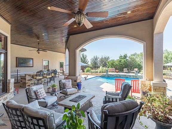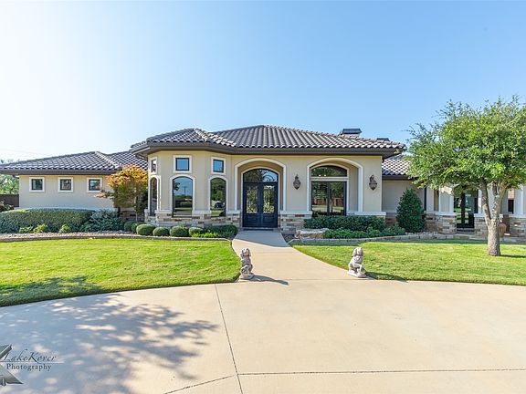 Experience luxury living in Abilene’s premier gated community, Vaquero Ranch. This custom Jon McDonald home sits on 1.3 acres with a circle drive, mature trees, and private gated entry to a 4-car garage. Inside, you’ll find 4 spacious bedrooms with en-suite baths, 2 half baths, and a stunning owner’s retreat featuring a large closet, fireplace, and spa-style bath. The chef’s kitchen offers Wolf appliances, Sub-Zero fridge, and hidden ice maker. Foam insulation throughout, a climate-controlled tornado shelter, and thoughtful touches like a hidden holiday closet set this home apart. Outdoors, enjoy a heated pool, full kitchen, Sunbrite TV, and surround sound for entertaining. A must-see property loaded with details!
