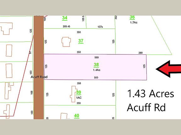1.43 Acres on Acuff Road Delight in your spacious 1.43-acre property in the country with less than a 20-minute commute to downtown Huntsville! You’ll appreciate the mature treed property shading you in the summer, as you watch wildlife from maybe a porch of your future home. Beautiful and tranquil mountain views surround this lovely property. If you are looking for a place to build a forever home, this maybe it! When driving north on Acuff Road from Gurley Pike, the vacant land parcel will be on your right, between the houses numbered #305 and #335. See map. This level, treed 1.43 acre property on Acuff Road won’t last long with these views! The title is clear, and we use our local title company for closing. Are you an agent? Yes, we can pay a commission, contact me. ****If I’m unable to answer, PLEASE leave a message with your phone#, otherwise I block spam call numbers. I will return your call asap. You can also email via the “Contact Agent”**** Thank you! Acreage is 1.43 +/- (as taken from land records) and the lines drawn on photos are for approximate reference only.