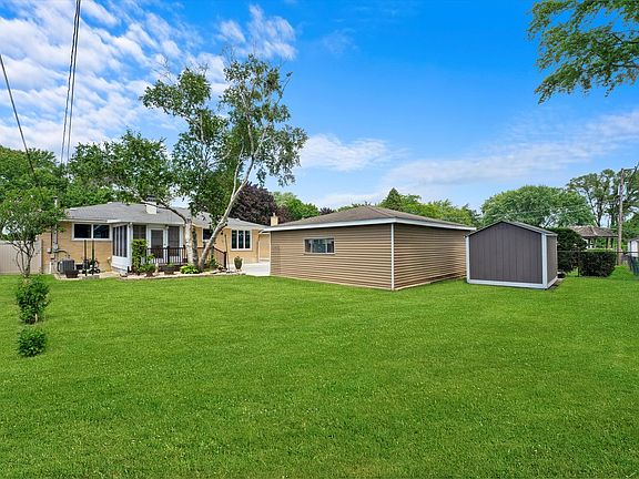 Pride of ownership in this beautifully maintained all brick ranch which is 2 feet wider than surrounding ranches. Home is located at a dead end street. Immaculately landscaped, generous-sized backyard. FULL partially finished basement has 2 additional bedrooms & sitting room but can be transformed into large additional living space. Recent roof replacement (tear off), NEW energy efficient casement windows (2022), including bay window in living room, NEW HVAC, whole house electric re-wired including upgrade to 220 panel (2023), NEW concrete driveway from street to the detached 2 1/2 car garage (2022), NEW sod replaced in front lawn (2023), NEW composite deck (2022), freshly painted interior (2023). Detached sunroom surrounded by NEW composite decking, updated kitchen w/new SS appliances, hardwood in living & dining room, also hardwood under carpet in bedrooms. Basement can be converted to one large open space. Sellers say take a second look!