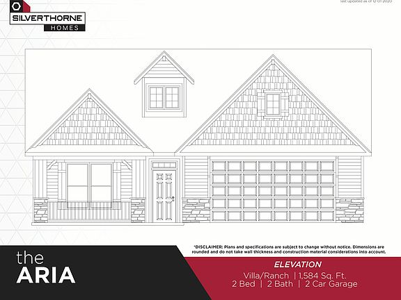 The Aria's welcoming foyer opens to an impressive great room and eat-in-kitchen with beautiful vaulted ceilings. The kitchen and great room are the heart and soul of the home for most people, the open floor plan makes for the perfect space for entertaining family and friends. The kitchen boast a large island with a breakfast bar, walk-in pantry, and plenty of counter space and room for two (2) cooks in the kitchen. Off the kitchen is access to the optional covered patio or four seasons room, perfect to enjoy the long summer nights.The expansive master suite is located opposite of the second/guest bedroom, in the rear of the Villa, offering a private bath with a dual-sink vanity a private water closet,, large walk-in closet, and a beautiful tray ceiling, makes this space feel very spacious.The secondary or guest bedroom shares a full hall bath with a walk-in closet directly off the foyer.The laundry is located on the first floor and directly off the garage making clean up a breeze.