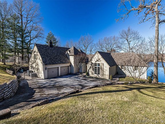 The Points on South Grand Lake Waterfront! This home located in Party Cove offers 150 feet of shoreline situated on .80 acres, beautifully manicured yard, great views from the home and covered porches, outdoor living space offers a woodburning fireplace with screened-in porch, wrought iron fencing surrounding the lovely courtyard and lakeside, and gentle slope to your one-slip covered dock. The exquisite interior of this four bedroom, three bath home has been completely updated with new interior paint, appliances, all countertops, flooring, light fixtures and furnished with gorgeous taste. The home comes completely furnished inside and out, all linens and kitchen items stay. This beautiful lake home is turnkey and ready to be enjoyed for a lifetime!