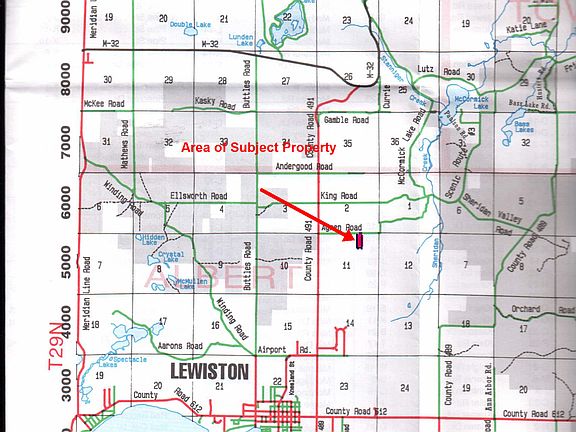 Nicely wooded 4 season 10+- acre parcel with lots of wildlife located on county maintained Agren road with 5'' water well and underground electric in place. Private Road back to cleared site with fire-pit and picnic table.