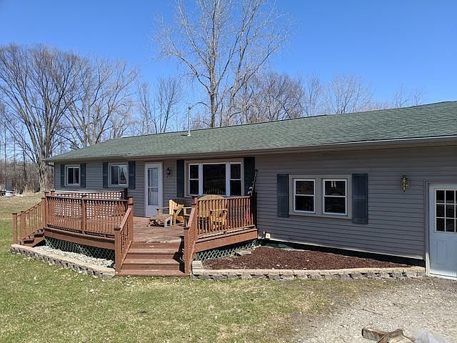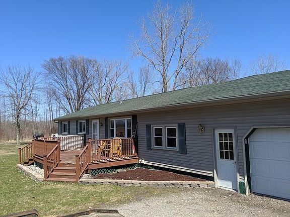 Are you looking for a couple acres in the country? This 1,300 sq foot, three bedroom, one bath home sits on 3+ partially wooded acres. Open concept kitchen and dining area with stainless steel appliances. The master bedroom has custom knotty pine accent wall. The bath features a large corner tub/shower. There is an attached 24' x 24' two car garage and plenty of land to build the pole barn you always wanted. Enjoy both the morning and afternoon sun with decks on the front and back of the house. Located in an area with a nice wildlife population. Features city water.