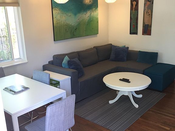 SHOWINGS BY APPT NOW AVAILABLE !!Need a launch pad for your move to the bay? Coming to work here for a month or more? Our Lovely FURNISHED 2 bd/1ba unit in private duplex is the perfect temporary home!Located on a friendly street in the highly desirable East End of Alameda, it's the larger unit of a 1950s duplex that shares a large lot with a street-side Victorian. Just a few blocks from the water's edge, you can easily walk to all the fun and excitement of Park St restaurants & shops, and be back relaxing in the private yard to see the hummingbirds getting their last work in. Or don't even leave the block, our place is steps away from the Encinal Shopping Center, home to Encinal Market , Scalise Meats, Feel Good Bakery, Cafe Au Lait, and Blue Fin Thai & Sushi as well as a nail salon, a print shop, and a skin care center. We are in the Otis school district, 6 minute drive to Bay Farm Ferry, 8 minutes to OAK airport, 20 minutes to SF, 40 imin to SFO. Fully furnished 2BD 1 BA unit available for stays of 1 month or longer. You're ready to go upon arrival with easy-to-use, fast WiFi and streaming-ready TV included along with all utilities. Super comfy KING bed in large master, smaller bedroom/office furnished with two single beds, LARGE closets, yard, gas heat and appliances, dishwasher, weekly housekeeping available (fee). Driveway loading, easy street parking, and laundry room (shared with other side of duplex) are right here. PLEASE NOTE: This rental is not appropriate for children under 12. Small quiet pet MAY be considered with in-person interview and add'l pet deposit.