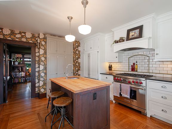 Welcome to this beautifully furnished bungalow where classic character meets comfortable, move-in-ready living. Available as a 6-month fully furnished rental, this thoughtfully curated home is ideal for anyone seeking a turnkey stay in a peaceful residential neighborhood. The home features two bedrooms and two full bathrooms, blending timeless craftsmanship with tasteful updates. Sunlight fills the inviting living room, showcasing original wood details, warm finishes, and a cozy gas fireplace. The adjacent dining room features rich wood paneling and gorgeous built-ins stocked with everything you'll need to enhance your dining experience. The kitchen is both stylish and functional, featuring updated cabinetry, butcher-block island, farmhouse sink, and ample storage fully equipped with a 6-burner chef's Wolf range, dishwasher, and built-in microwave. The inviting primary suite with a luxury Avocado mattress offers a cozy retreat with an updated bath featuring a walk-in shower with bench. The 2nd bedroom is stylish, warm, and comfortable with a pillow-top mattress. The 2nd full-bathroom has been updated with a large soaking tub perfect for relaxing after a long day. As an added bonus in the backyard, you'll find a detached office equipped with a pull-out couch. Perfect for working from home or a cozy retreat. Outside, you'll find a spacious backyard perfect for relaxing and entertaining. The kitchen opens to a deck perfect for lounging with a couch, chairs, and a fire pit. There is also a dining table on the patio, which is ready for your al fresco meals. The home sits on a quiet, tree-lined street in one of Alameda's desirable neighborhoods, close to parks, local shops, dining, and convenient ferry and transit options for easy access to San Francisco and the East Bay. This is a rare opportunity to enjoy a thoughtfully furnished home that balances charm, comfort, and convenience in the heart of Alameda. Highlights: - 2 bedrooms, 2 full bathrooms and office space - Fully furnished, turnkey rental - Charming bungalow architecture with original details - Updated kitchen with island and high-end appliances - Bright living spaces with warm wood accents - 2 blocks to Park Street's popular restaurants and shops - Proximity to the historic Art Deco Alameda Theatre - Nearby favorite restaurants include: Fisque BBQ, Thaina, Burma Superstar, East End Pizza - Bike-friendly area with mostly flat terrain and well-marked bike lanes Terms: - $4800/mo - $7200 Security Deposit - Available Date 2/1/2026 - 6-month/fully-furnished rental - No Smoking - Utilities Included (up to a monthly cap) - Gardening and Bi-Monthly Cleaning Included - Parking for two cars in the driveway