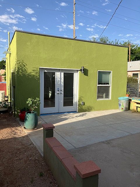 Stand-alone casita that looks onto lovely community garden. All new everything, including mini-splits for AC and Heating. Fully furnished and safely tucked into unique space. Ample street parking and EV charger available. Nestled between Downtown, Old Town, Country Club neighborhood, and the Rio Grande, this is a walkable and accessible neighborhood with multiple transit options. Two miles to Presbyterian Hospital. Very close to popular walking and cycling Bosque Trails and Country Club neighborhood. Vibrant and engaged community of neighbors.