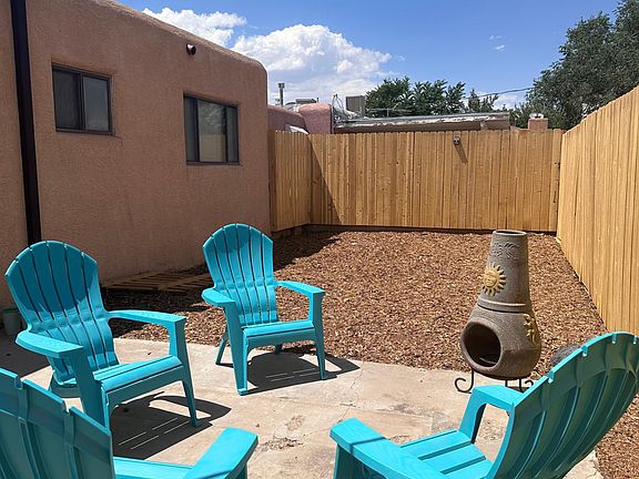 Minimum of 3 month lease rental at this price. Great for guests looking to be near Kirkland AFB, VA, UNM, Lovelace and Presbyterian Hospitals, or airport who need a reasonable fully furnished lease price. Close to restaurants and Grocery. Quite neighborhood with front locked patio gate, keyless entry, exterior security cameras, as well as a cozy and private fully fenced backyard patio area. We have brought in some vintage and mid century modern pieces with new and modern furniture that will make you feel comfortable from the moment you walk in. Everything you need and nothing you don't. We call our decor "Granny Chic". Beautiful refinished hard wood flooring and a newly updated bathroom that retains some of the original charm. The 1950s vintage style kitchen is stocked with all the needed kitchen tools to allow you to cook comfortably. Use the office for a bonus room, guest or a place to study.