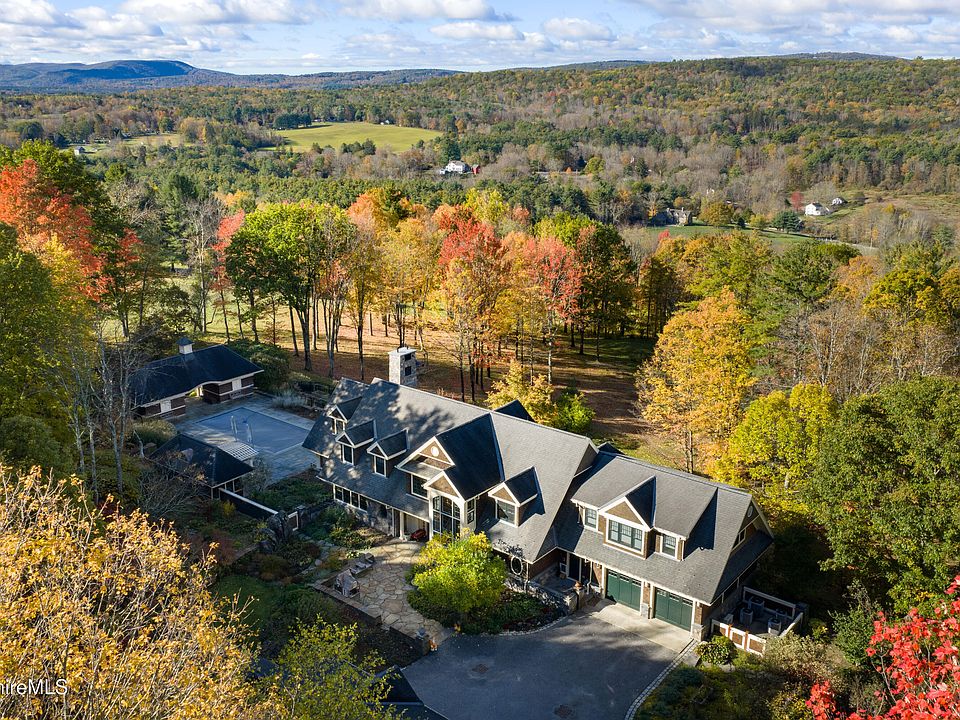 Nestled in the heart of Alford, Massachusetts, this extraordinary 35.6-acre Berkshire County estate offers unparalleled privacy with sweeping western Catskill Mountain views and direct access to conservation land. The impressive 9,400 sq ft main residence, built in 2003 and comprehensively updated beginning in 2020, features 4 bedrooms, 5 full baths, and resort-caliber amenities throughout its thoughtfully designed spaces. The grand entertaining areas include a gourmet kitchen with Wolf range and dual Sub-Zero refrigerators, expansive great room with fieldstone fireplace, and elegant dining spaces that flow seamlessly to outdoor terraces capturing the stunning mountain vistas. The luxurious primary suite offers dual bathrooms, dual dressing rooms, and a private kitchenette, while the finished lower level encompasses a stadium-seating theater, temperature-controlled wine cellar, and workout studio.